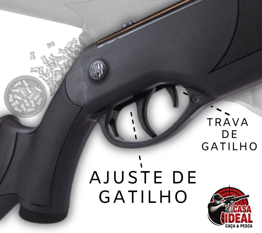Precisão Premium: Nova mira em fibra óptica (estilo Gamo) e gatilho ajustável.