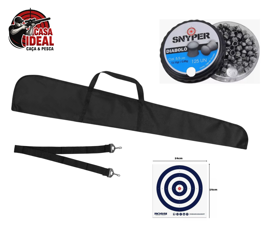 ✅ 1x Capa Reforçada (Proteção e segurança no transporte) ✅ 1x Bandoleira (Mais conforto no manuseio em campo) ✅ 2x Caixas de Chumbinho (Qualidade para começar agora) ✅ 1x Pacote de Alvos (Para testar sua nova potência)