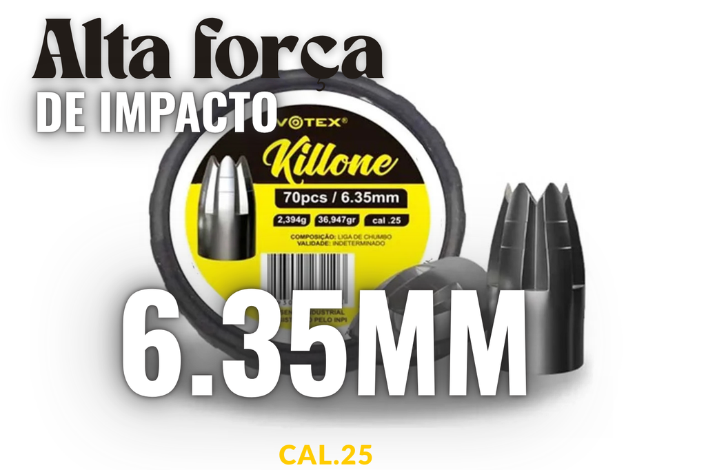 O calibre 6.35mm é ideal para quem deseja alto poder de impacto e ótima performance em tiros de média e longa distância. Sua coronha em madeira de alta resistência é anatômica, garantindo conforto e firmeza durante o uso, enquanto o cano de aço estriado proporciona agrupamentos mais precisos.